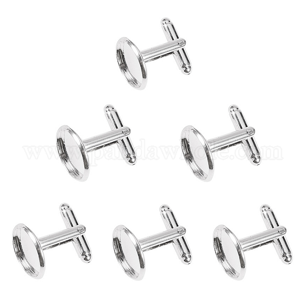 • Серебро Плоские круглые латунные манжеты, пустой лоток для запонок для аксессуаров одежды, серебряные, 7.4x7.3x2.5 см