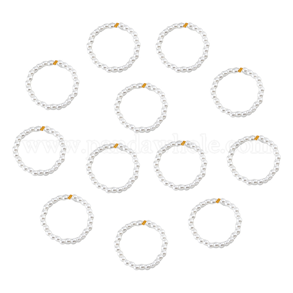 растягивающееся кольцо из пластика с имитацией жемчуга и латунными бусинами: около 0.73 дюйма (18.5 мм) в диаметре, 0.10 дюйм (2.5 мм) шириной, 12 шт;