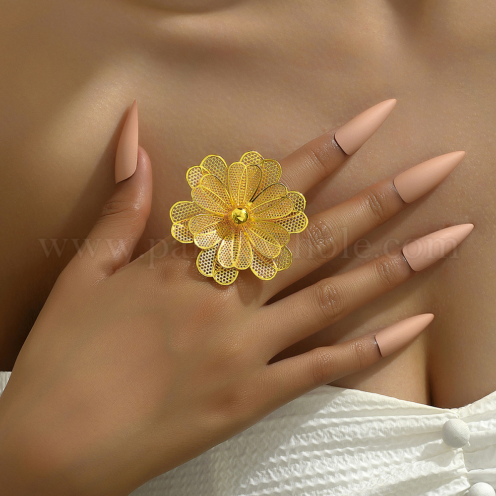 Элегантное железное открытое кольцо-манжета в виде цветка для аксессуаров к женскому свадебному платью
