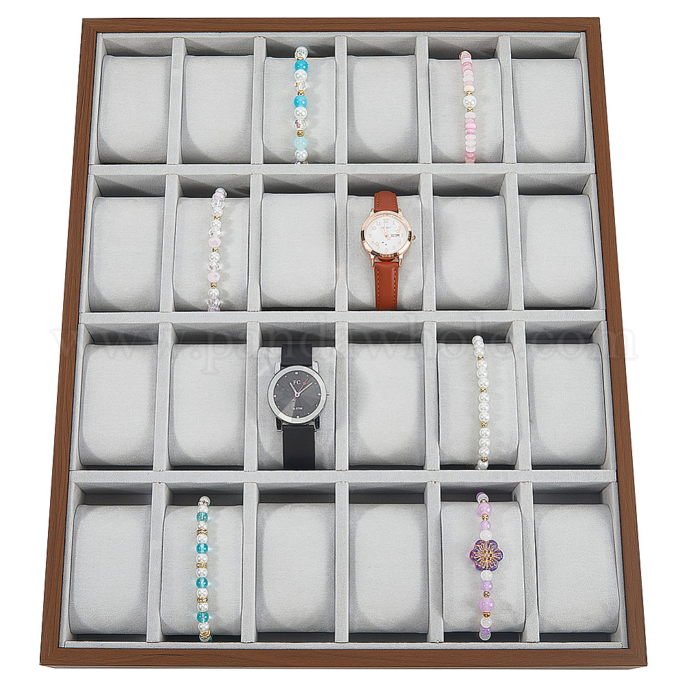 24 Деревянные подносы для демонстрации часов с подушками, подставки для хранения наручных часов, прямоугольные