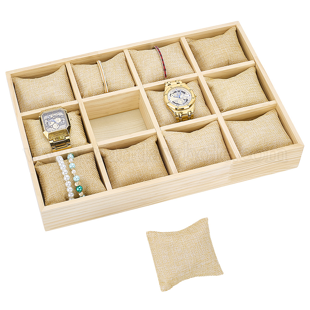 12 Деревянные подносы для демонстрации часов с подушками, подставки для хранения наручных часов, прямоугольные