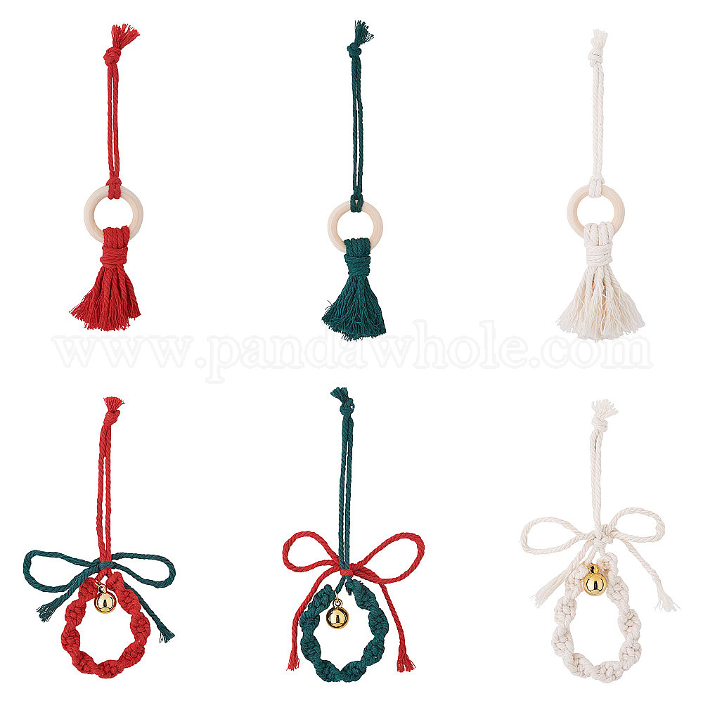 2 наборы 2 стиль рождественская тема хлопчатобумажные плетеные подвесные украшения наборы, кольцо с кисточкой, колокольчиком и бантом, для украшения свадебного фестиваля (029TFK)