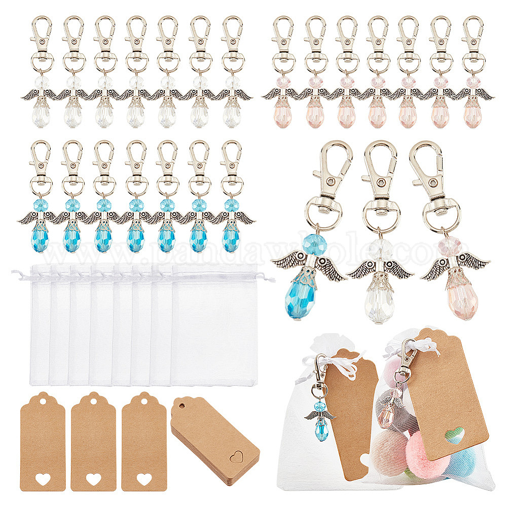Подвеска в стиле фей, включая подвески-бабочки из сплава со стеклянными бусинами и застежками-карабинами на шарнирах, бумажные ценники, сумочки из органзы (02GS6A)