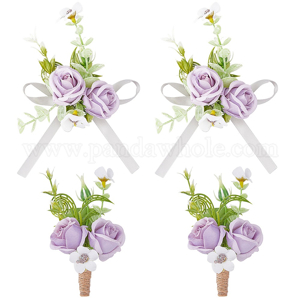 4шт 2 стиль искусственный подсолнух запястье корсаж и брошь, с тканью и шпагатом и пластиковой фурнитурой, на свадьбу и рождественский подарок