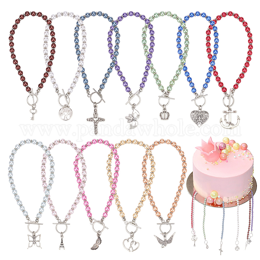 • (52) Непрозрачная лаванда Акриловый искусственный жемчуг круглый свадебный торт из бисера, партийные украшения, С подвеской из тибетского сплава, отмычка/птица/корона, разноцветные, 258~269 мм, 12 стиль, 1 шт / стиль, 12 шт / коробка