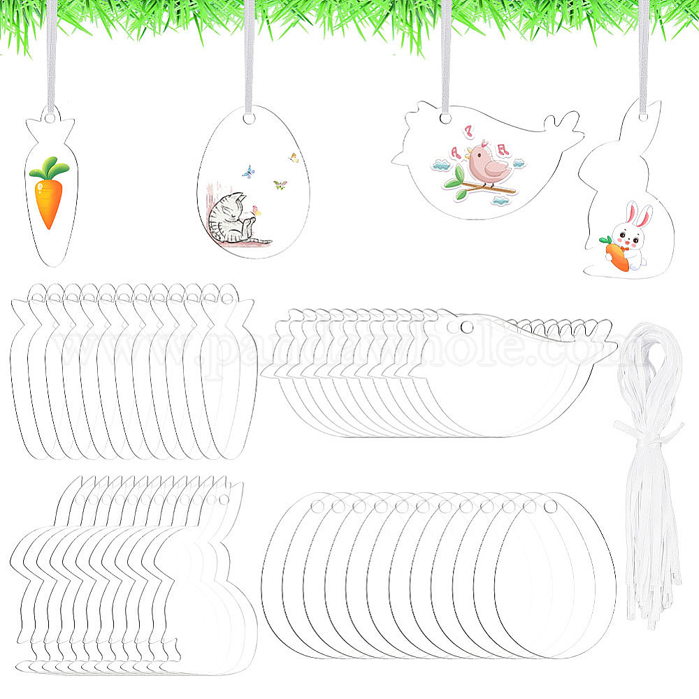 1 набор прозрачных акриловых пустых больших подвесок для украшения, подвесное украшение для пасхальной вечеринки, кролик/яйцо/морковь/птица (02N57Z)