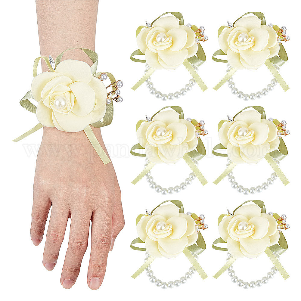 Пластиковый корсаж на запястье, с искусственным цветком из полиэфирной ткани и тканевыми эластичными браслетами (02QHXA)