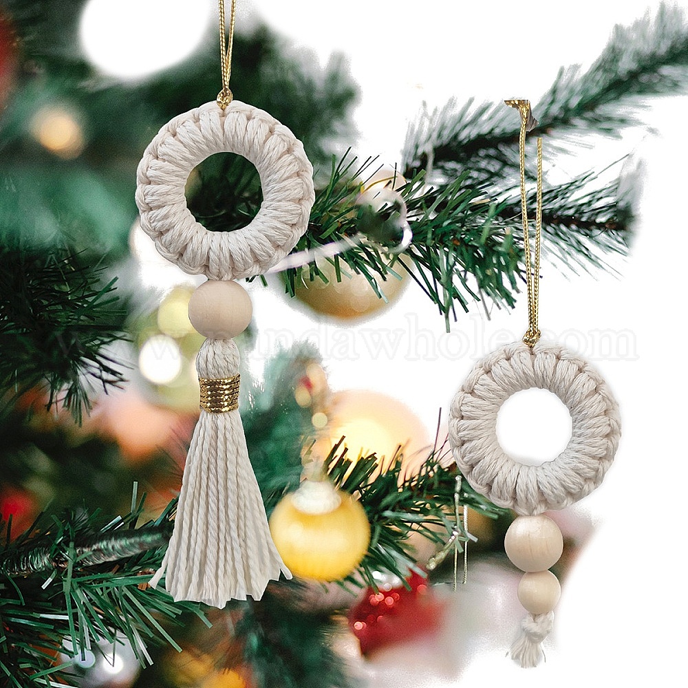 Рождественский венок из хлопка ручной работы, подвесные украшения в технике макраме, для подвесных украшений на елку