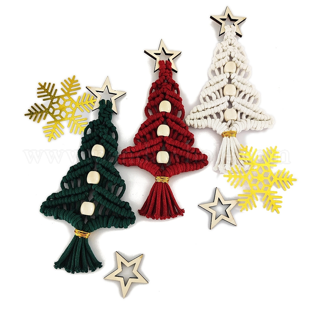 Рождественская елка ручной работы из хлопчатобумажной ткани с подвесками в виде звездочек в технике макраме., для подвесных украшений на елку