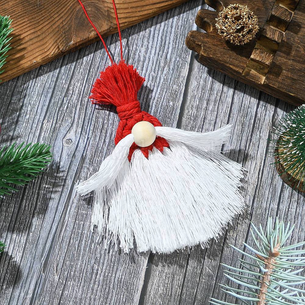 Подвеска Санта-Клаус из хлопка в технике макраме ручной работы, с деревянных бусин, для подвесных украшений на елку (02ZEXP)