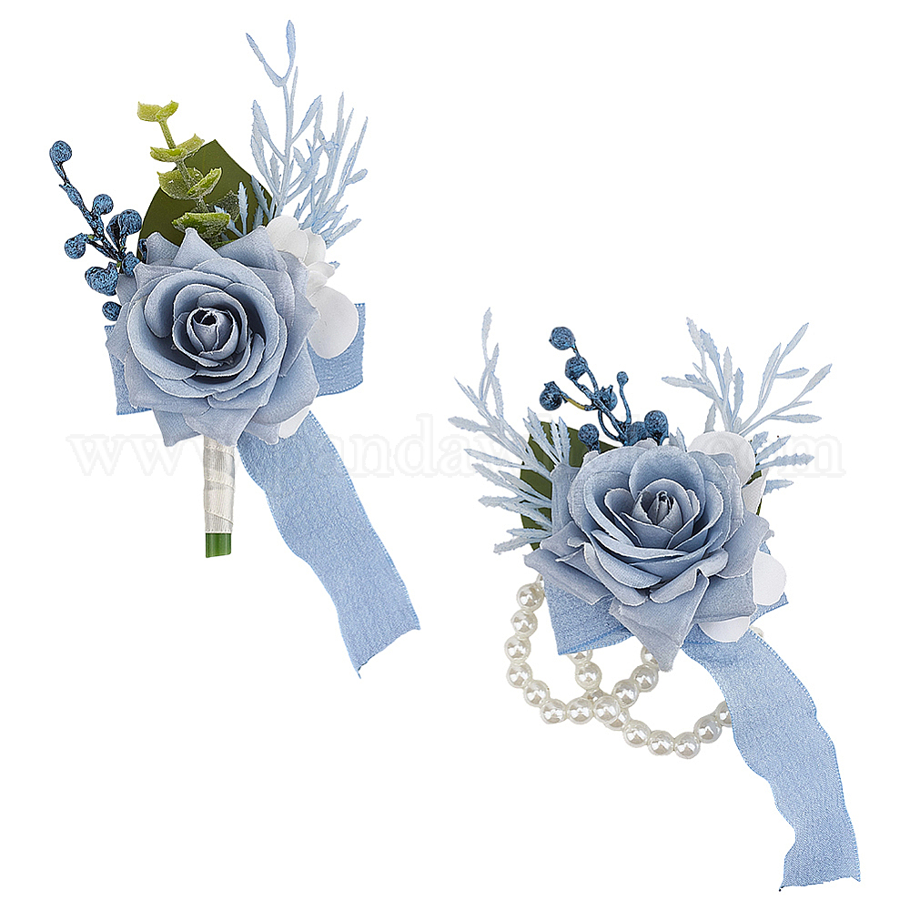 2 шт. 2 стили шелковая ткань имитация розы корсаж на запястье, с абс пластмассовыми жемчужными бисером, ручной цветок для невесты или подружки невесты, свадьба, партийные украшения