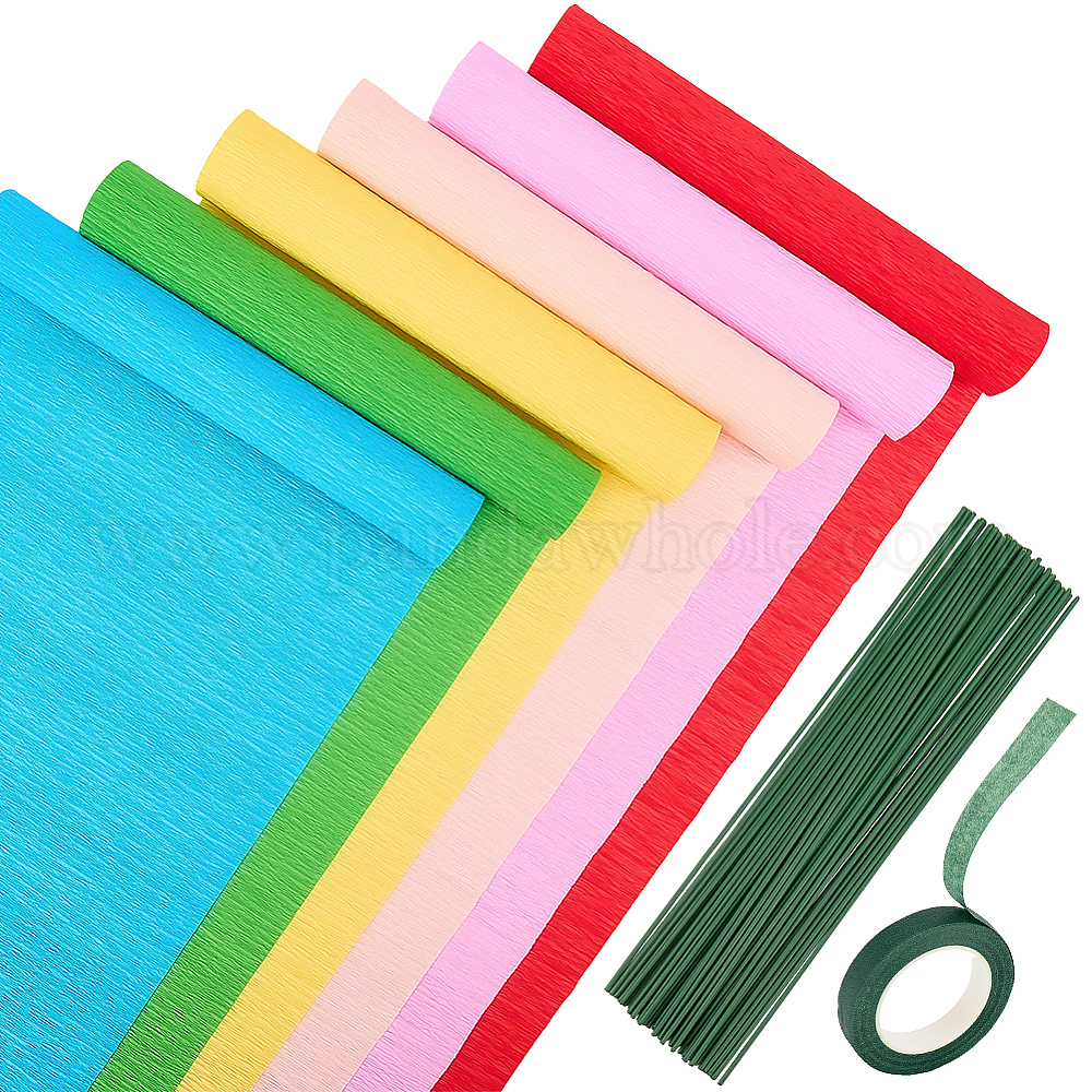 6 рулоны 6 цвета гофрированная бумага ручной работы, с 2 рулонами садовой прививочной бумажной ленты и 50шт. пластика с железным цветочным стеблем, на день рождения украшение свадебной вечеринки