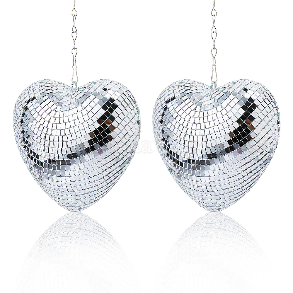• Серебро Сердце стеклянный зеркальный шар отражающий шар, с крючком, застежкой и цепочками из сплава, для вечеринки свадьбы стеклянный шар украшения, серебряные, 190x200x82 мм