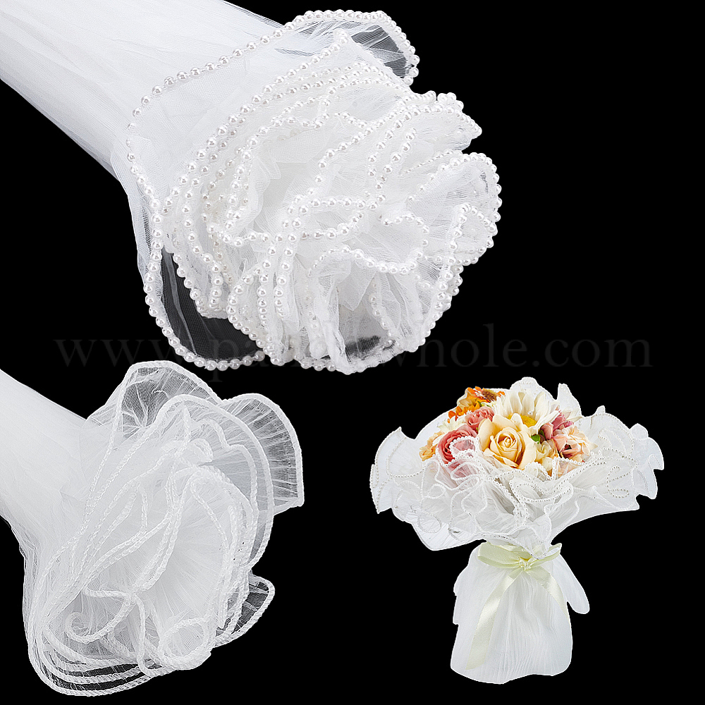 16 ярдов 2 цветов органза цветочный букет упаковочная бумага сетка, на день Святого Валентина, свадьба, украшение на день рождения, с пластиковыми бусинами из искусственного жемчуга