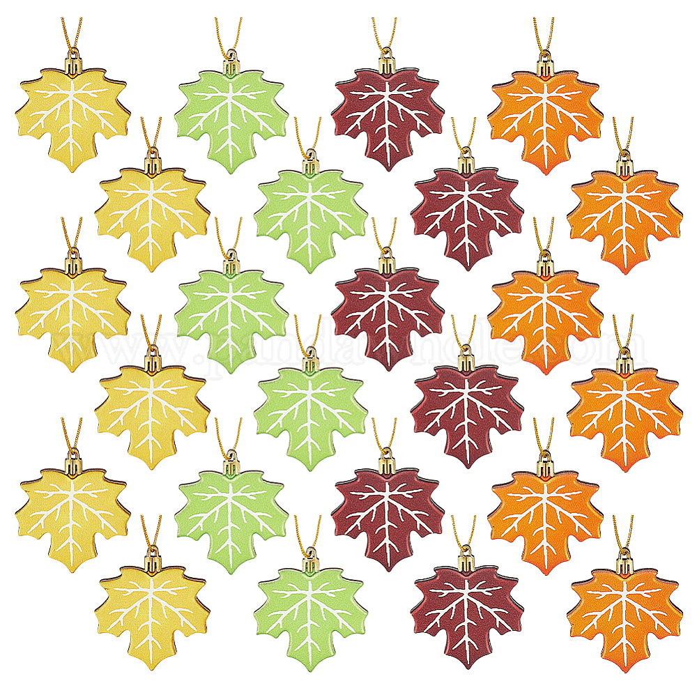 24шт. деревянные подвески в виде кленовых листьев, подвесные украшения ко Дню благодарения, с 24шт. веревкой