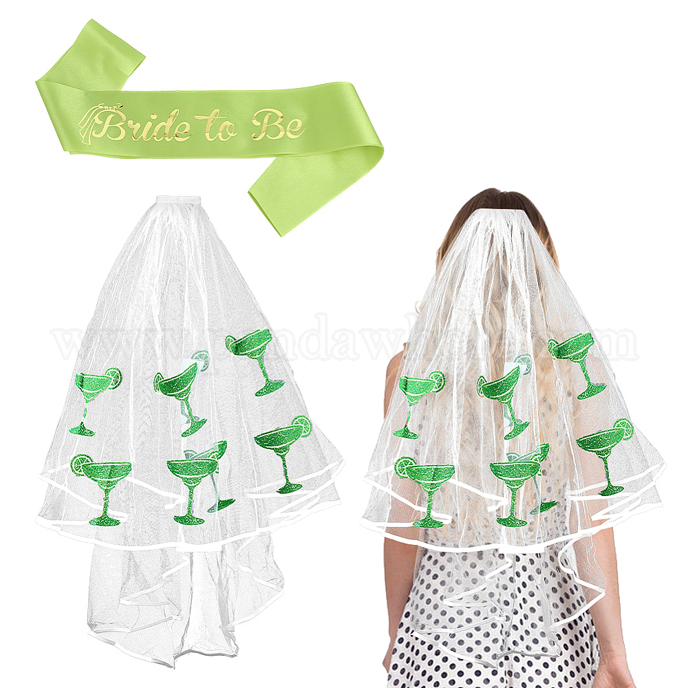 1 Полиэстеровая лента для невесты, оформление партии, 1 шт. марлевые гребни для волос с рисунком в виде бокала для вина