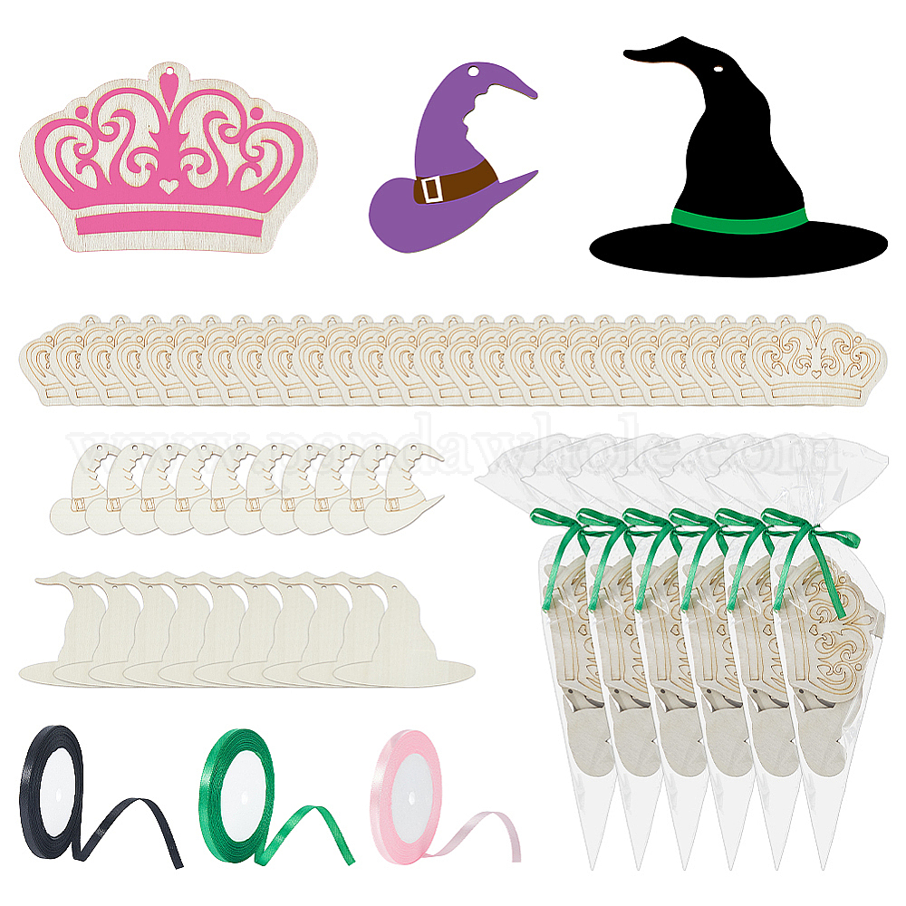 • (52) Непрозрачная лаванда Наборы для самостоятельного изготовления украшений для вечеринки в стиле феи, в том числе деревянные подвески, хранение конфетных печеньек в рожках, Полиэфирная лента, разноцветные, 70~100x70~120x2~2.5 мм, отверстие : 3~4 мм