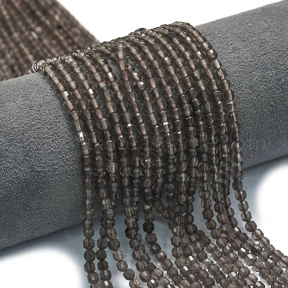 Природный дымчатый кварц нитей бисера, энергетическая призматическая огранка с двойными концами бусины, граненые двухконусные