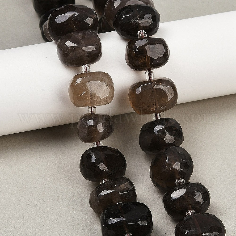 Природный дымчатый кварц нитей бисера, граненые, самородки, с бисером