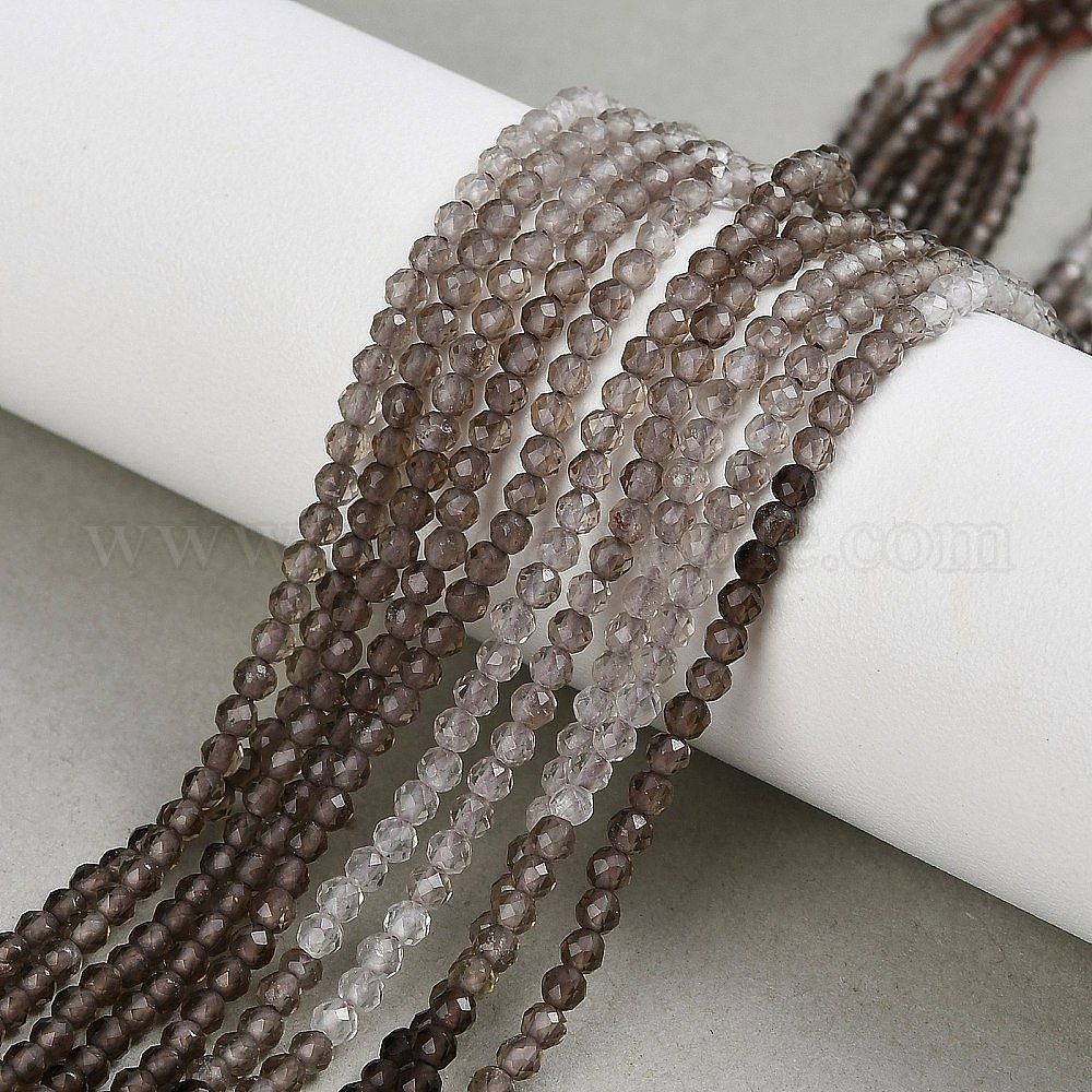 • Дымчатый Кварц Нити бусин из натурального дымчатого кварца градиентного цвета, круглые, граненые, 2 мм, отверстие : 0.5 мм, около 195~197 шт / нитка, 15.39''~15.51'' (39.1~39.4 см)