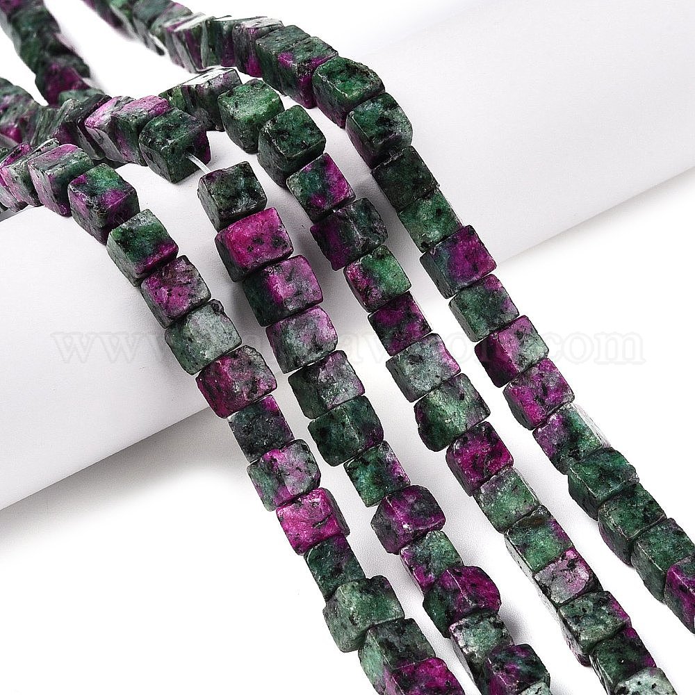 Окрашенная натуральная кунжутная яшма, имитация рубина в нитях бусин цоизита, кубические