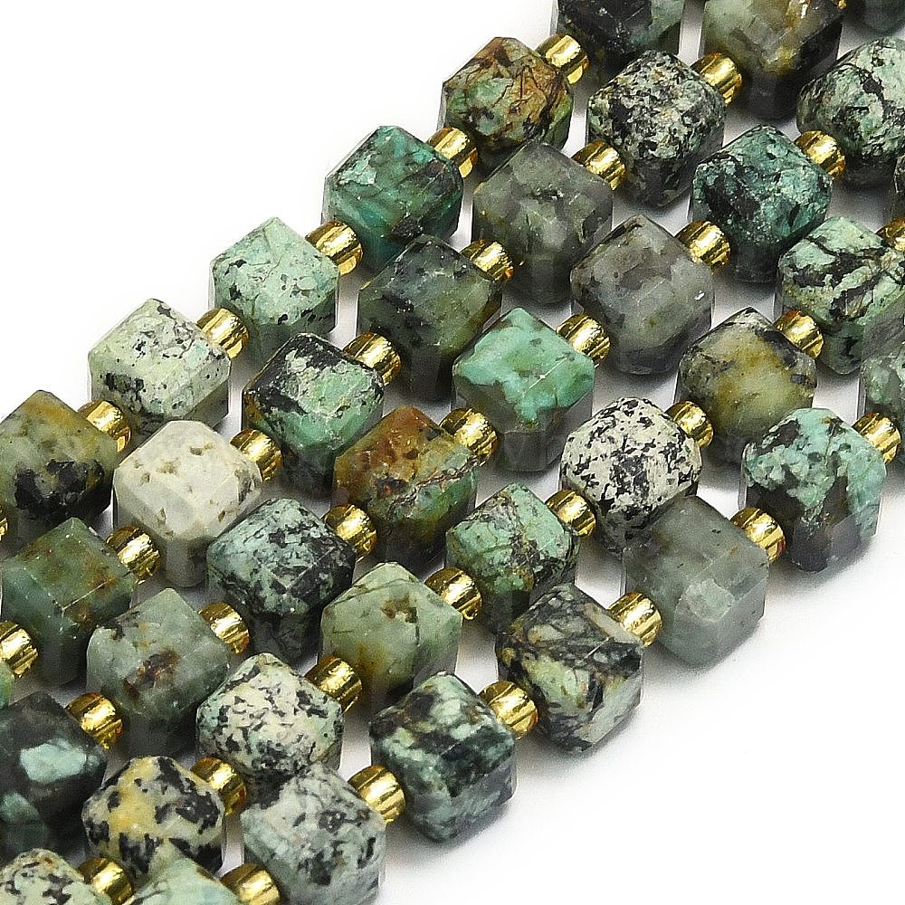 Бусы натуральная африканская бирюза (яшма), граненые, кубические