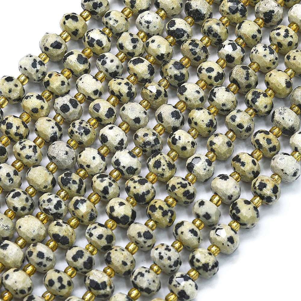 Природные яшмы далматин бисер нитей, с бисером, граненые, фонарь