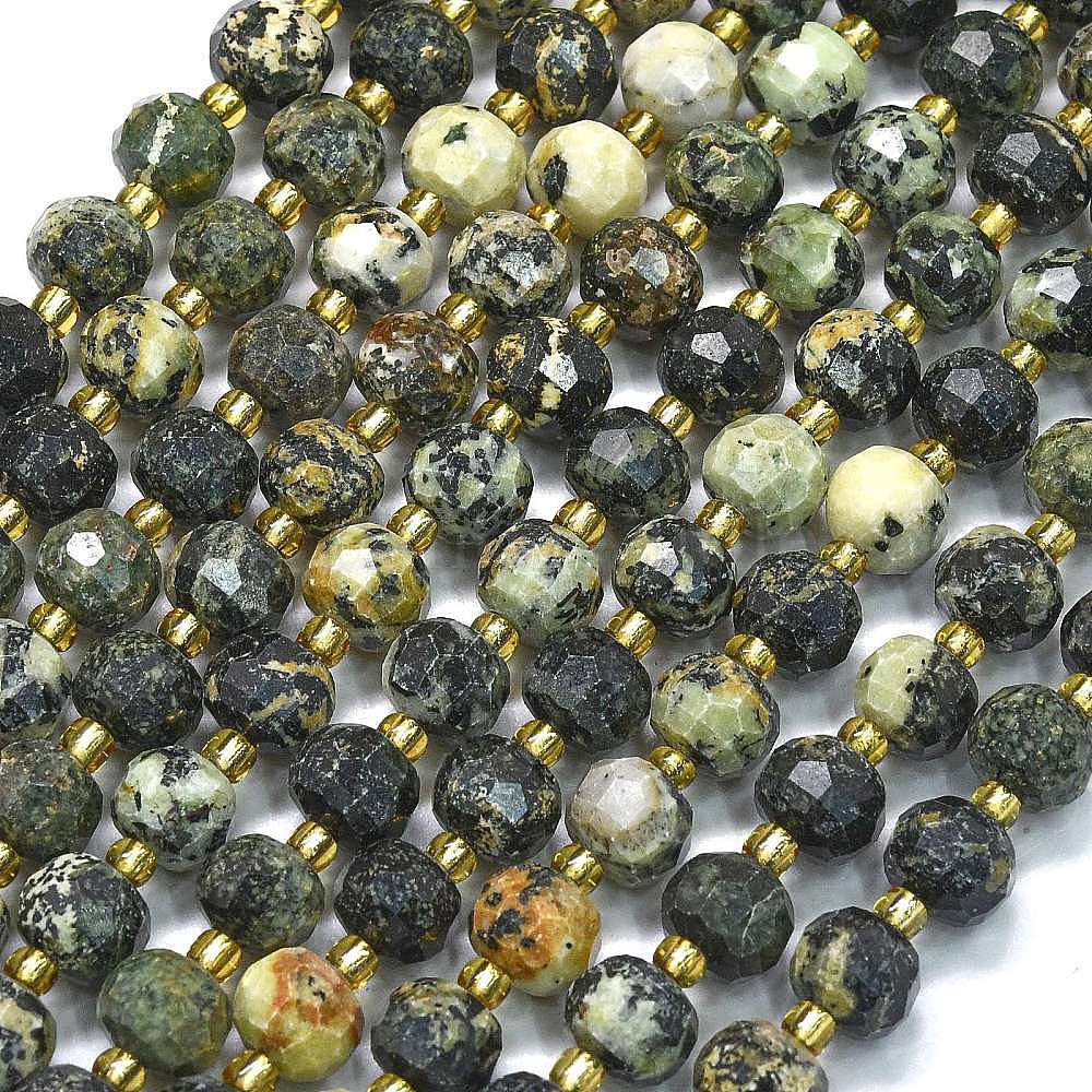 Бусы натуральная африканская бирюза (яшма), с бисером, граненые, фонарь