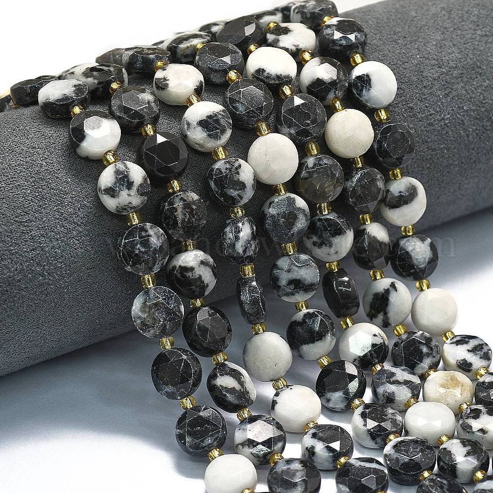 Природные зебры яшмы бисер нитей, граненый шестиугольный разрез, плоско-круглые, с бисером