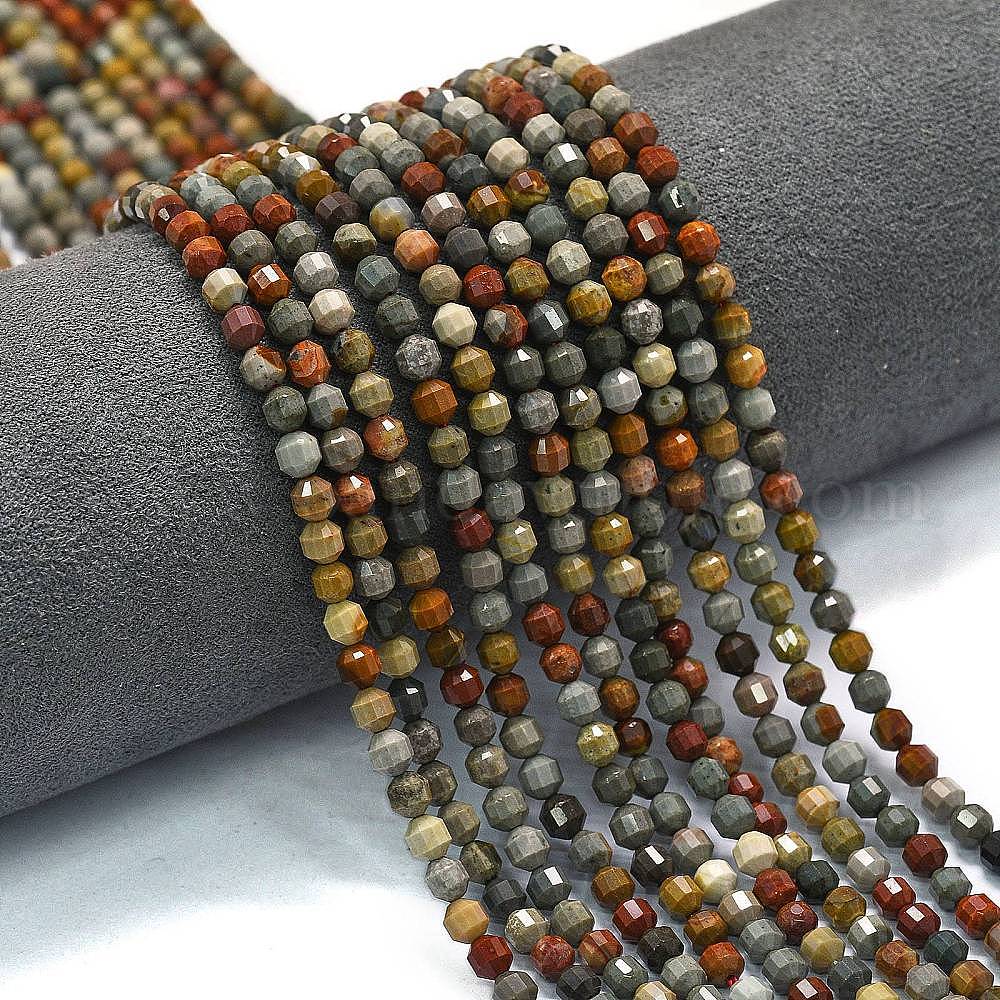 Океан Природный яшмы бисер нитей, энергетическая призматическая огранка с двойными концами бусины, граненые двухконусные