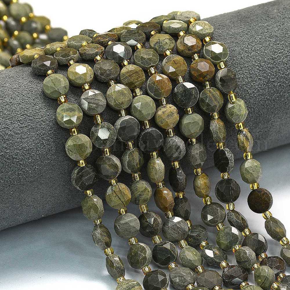 Природное серебро листьев яшмы бисер нитей, граненый шестиугольный разрез, плоско-круглые, с бисером