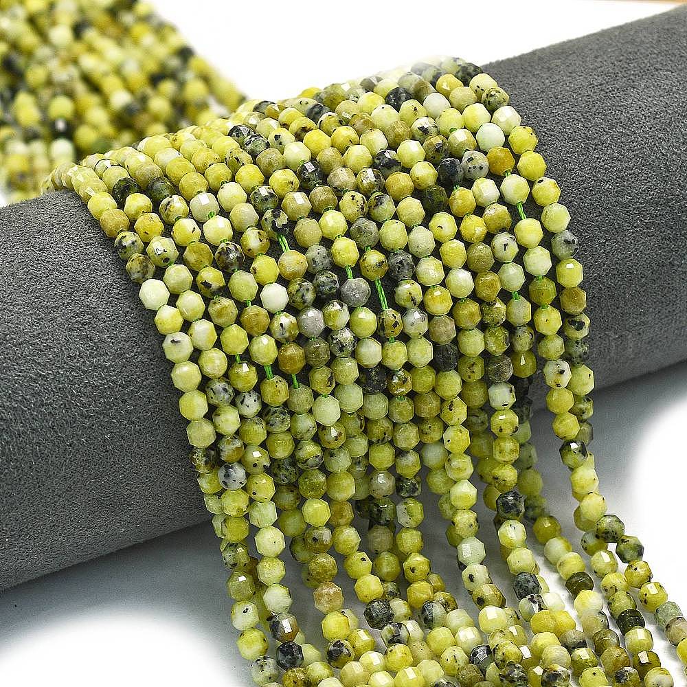 Бусы из натуральной желтой бирюзы (яшмы), энергетическая призматическая огранка с двойными концами бусины, граненые двухконусные