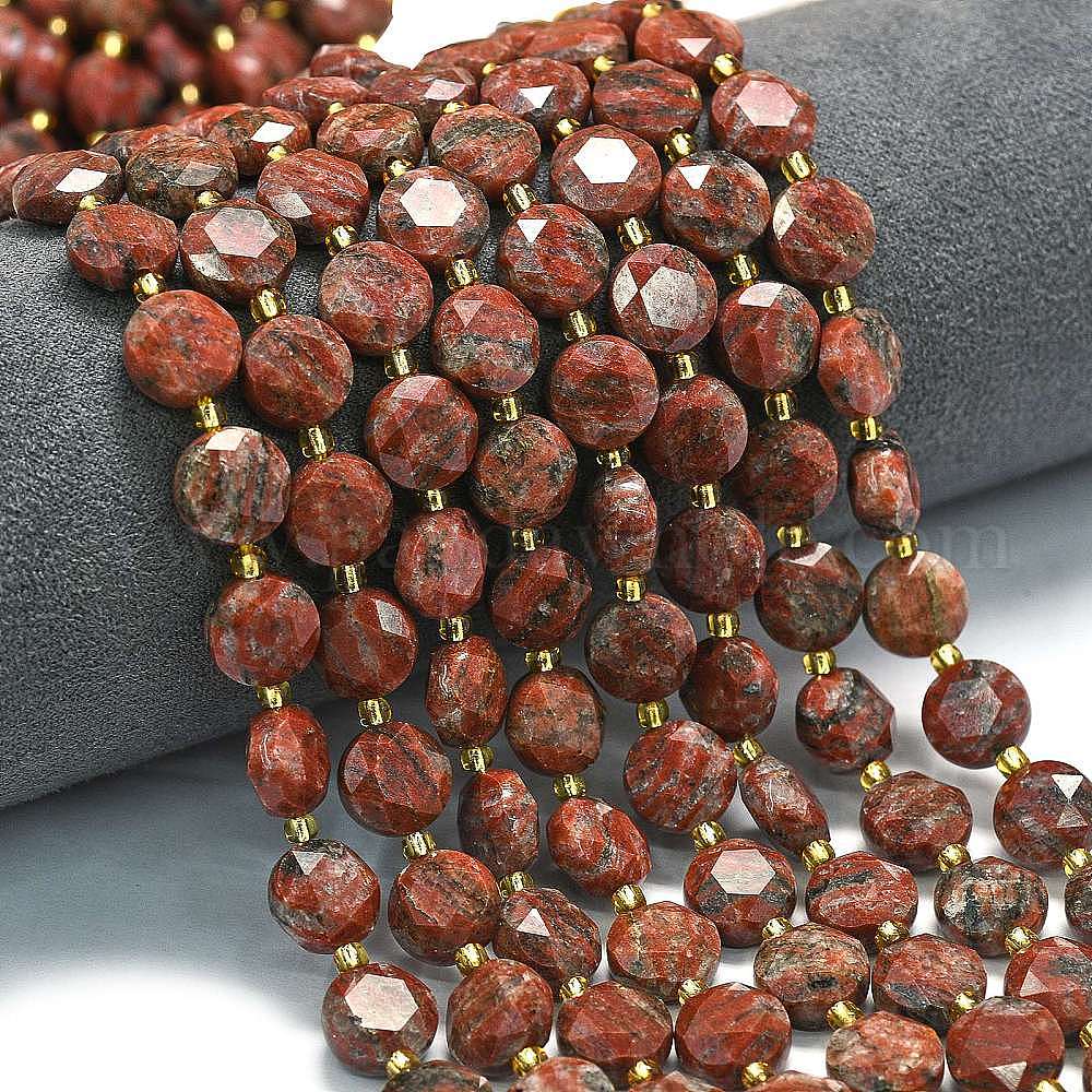 Натуральный красный кунжут яшма бисер пряди, граненый шестиугольный разрез, плоско-круглые, с бисером