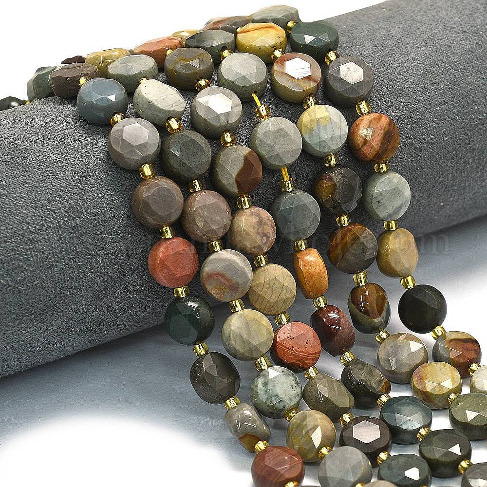 Океан Природный яшмы бисер нитей, граненый шестиугольный разрез, плоско-круглые, с бисером