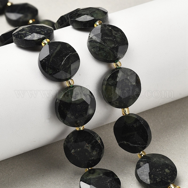 Натуральные пряди камбабы из яшмы, граненый шестиугольный разрез, плоско-круглые, с бисером