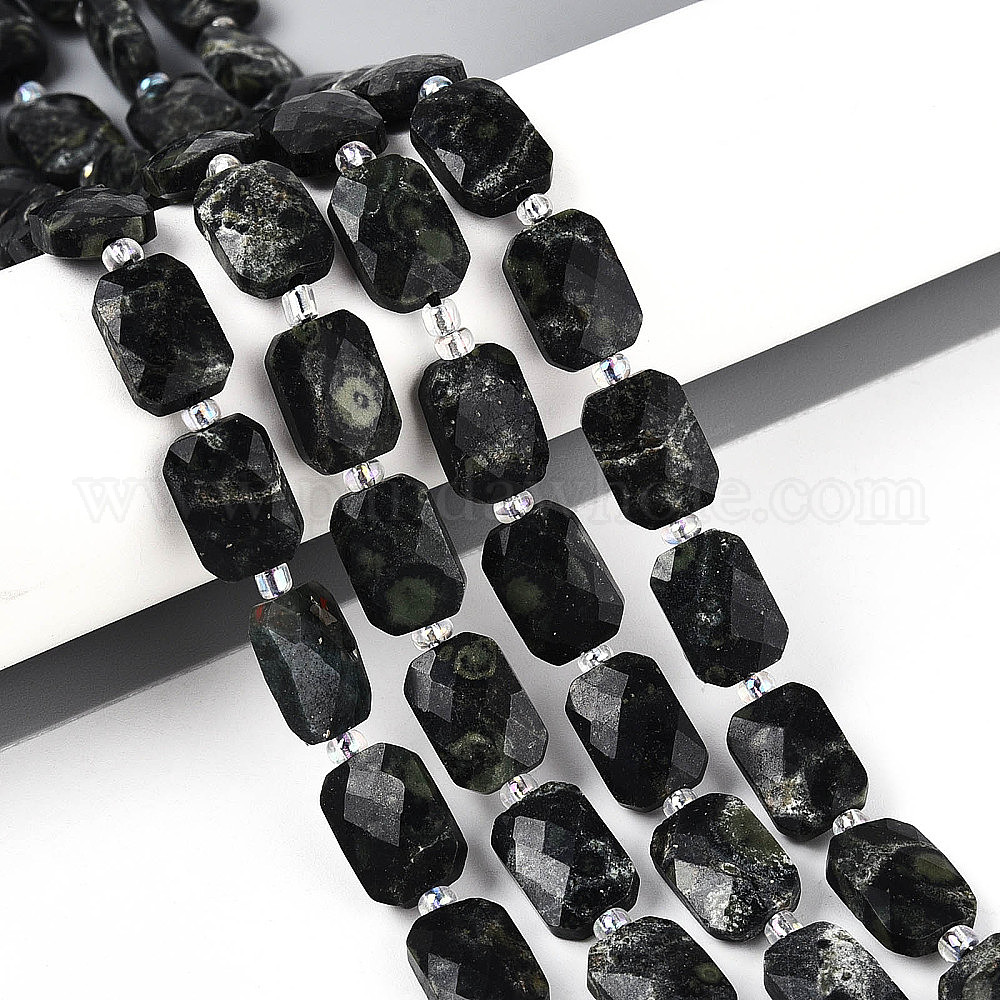 Натуральные пряди камбабы из яшмы, прямоугольные, граненые, с бисером