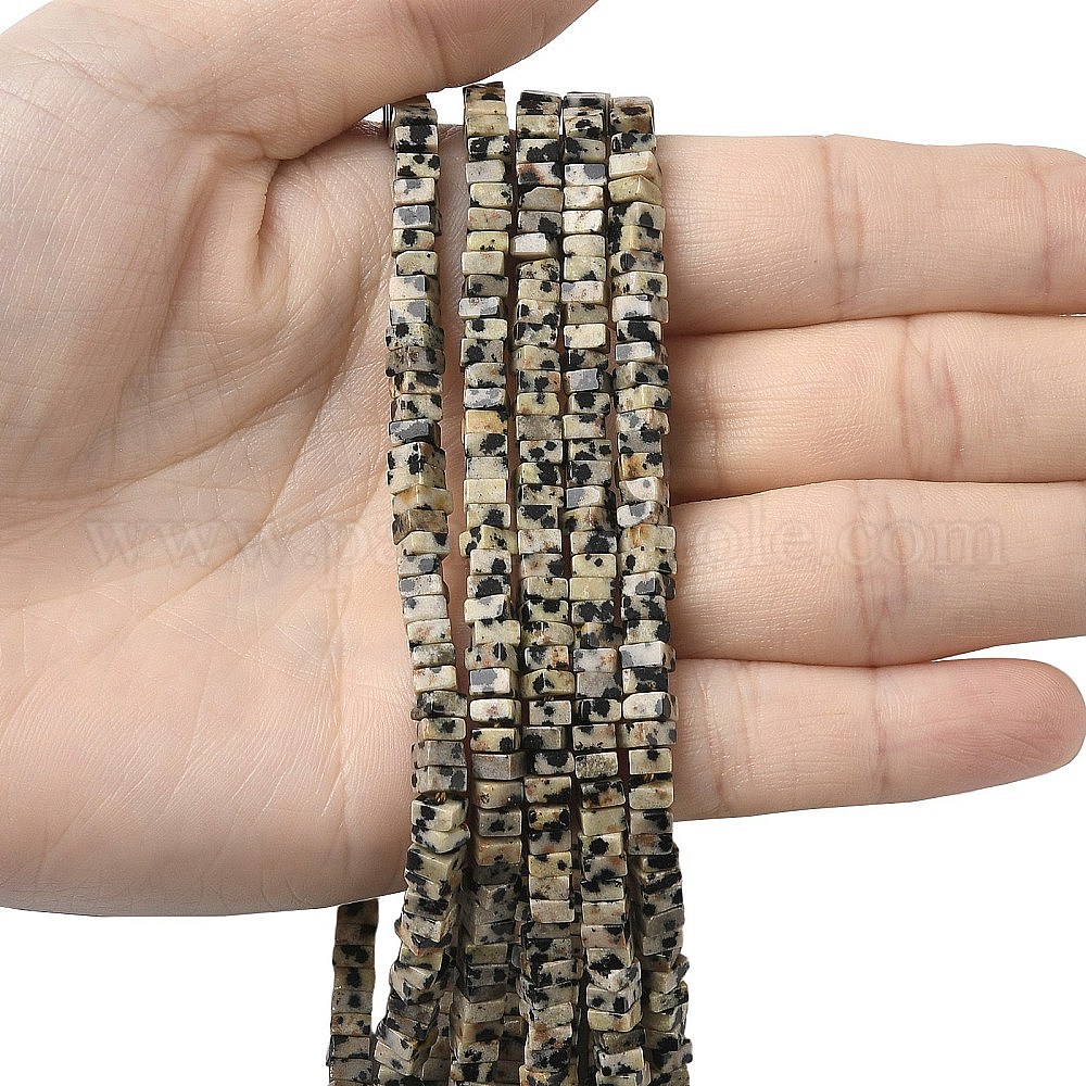 • Далматинских Джаспер Природные яшмы далматин бисер нитей, квадратный, 4.5x4.5x2.5 мм, отверстие : 1 мм, около 46~51 шт / нитка, 14.57~15.35'' (37~39 см)