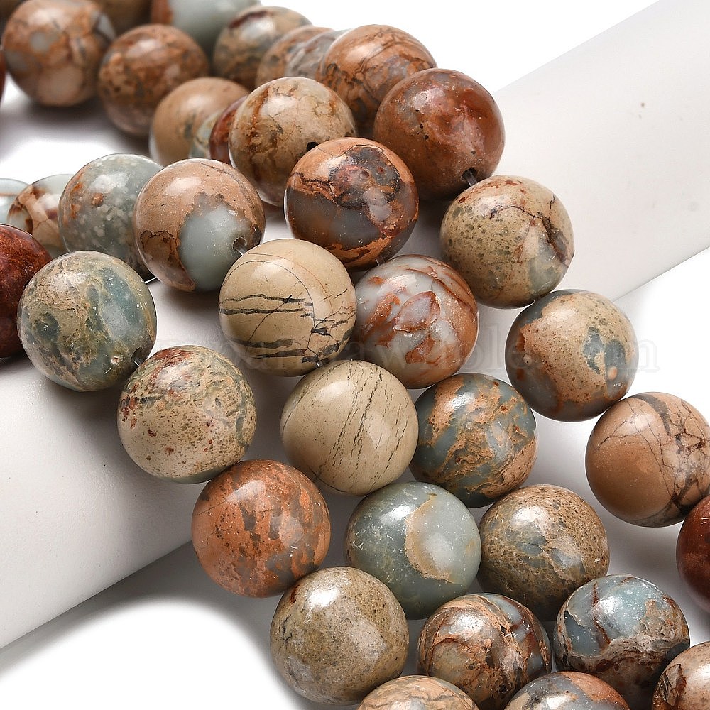 • Аква Терра Яшма Натуральные бусины из аква терра яшмы, круглые, 14 мм, отверстие : 1 мм, около 28 шт / нитка, 14.76'' (37.5 см)