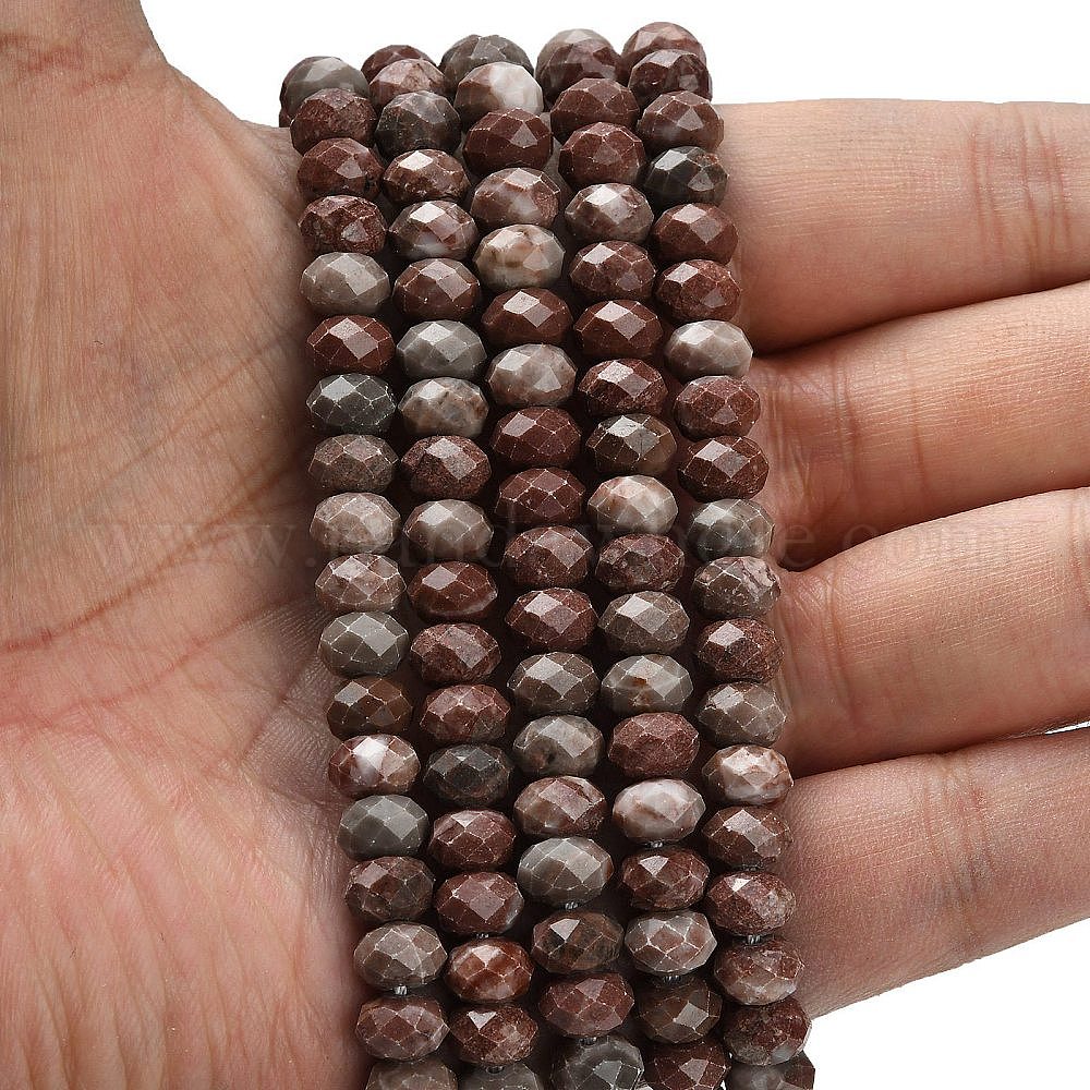 • Яшма с Красной Линией Натуральный красный линия яшмы бисер нитей, граненые, рондель, 8x5.5 мм, отверстие : 1.2 мм, около 69 шт / нитка, 15.16'' (38.5 см)