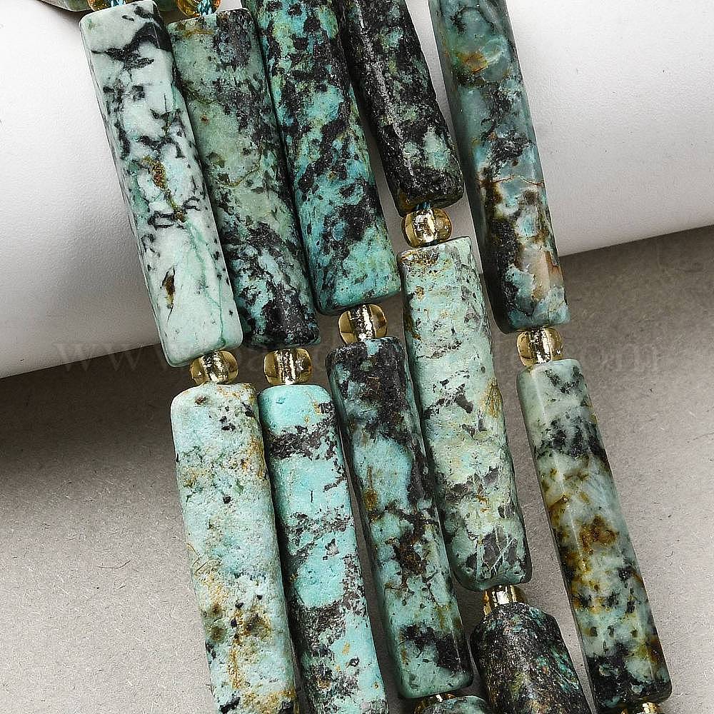 Бусы натуральная африканская бирюза (яшма), колонка, с бисером