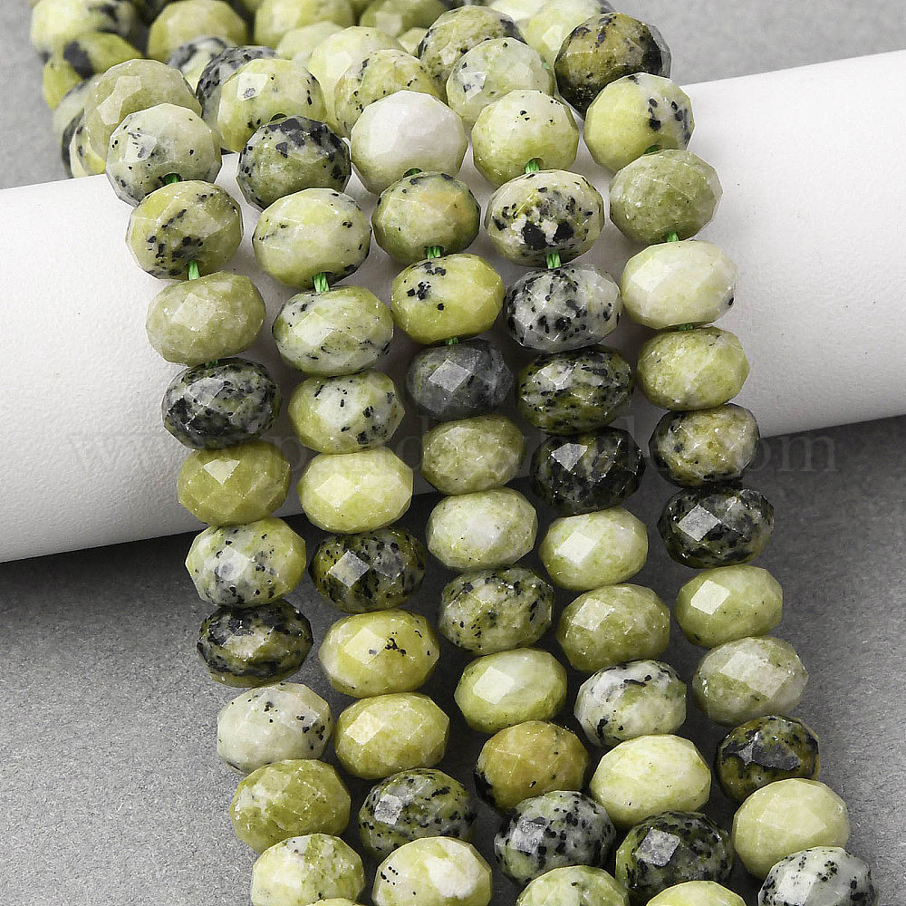 Бусы из натуральной желтой бирюзы (яшмы), рондель, граненые (03ANNM)