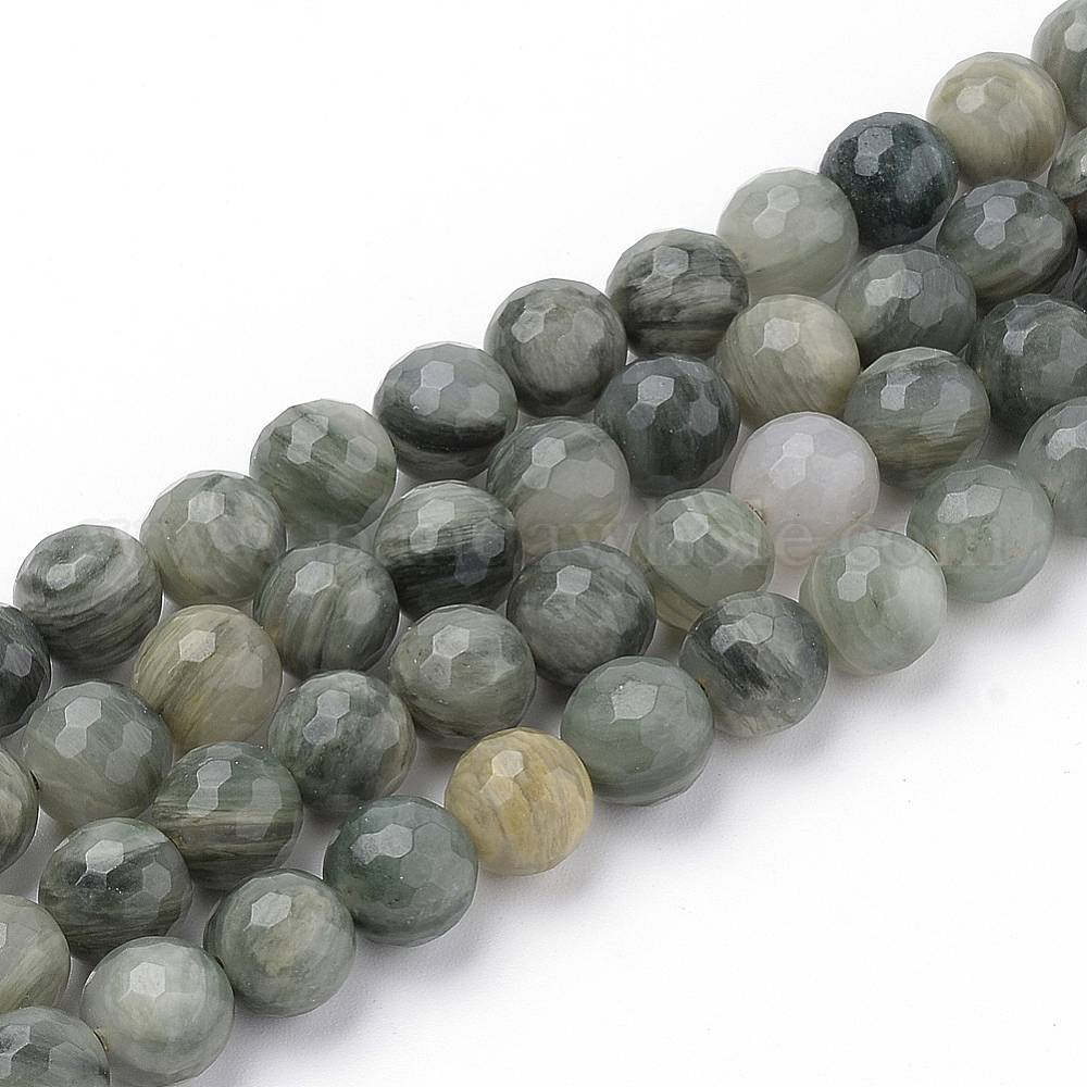 Естественная зеленая линия яшма бисер прядь, граненые, круглые