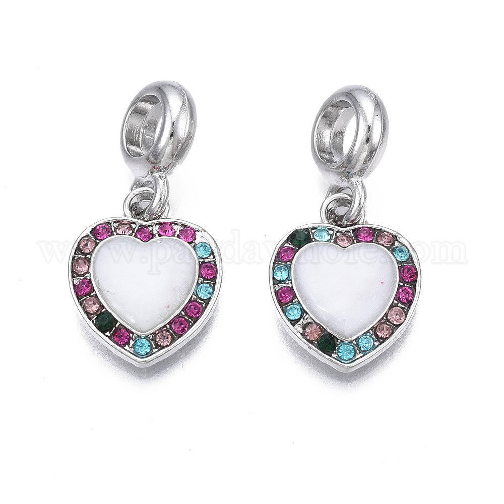Подвеска из эмалированного сплава с покрытием из сплава в европейском стиле, со стразами, Подвески с большими отверстиями, без кадмия, без никеля и без свинца, платина, сердце