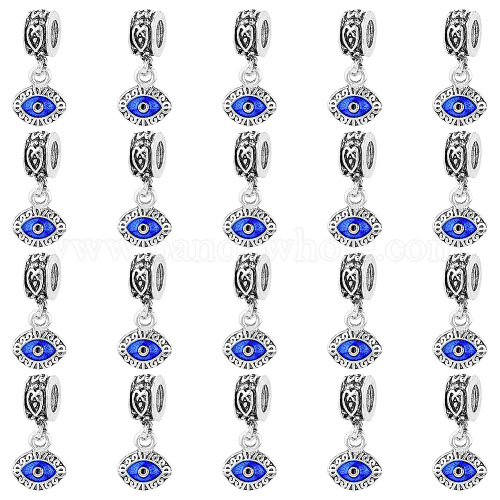 40шт. сплав эмаль европейские подвески, злые глаза, Подвески с большими отверстиями, античное серебро