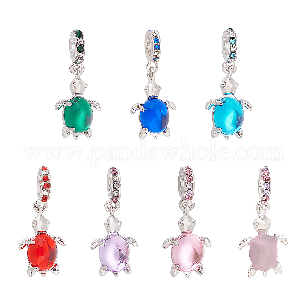 7шт. 7 цвета стекла европейские подвески с подвесками, большой кулон дыра, со сплавочной фурнитурой со стразами, платина, черепаха