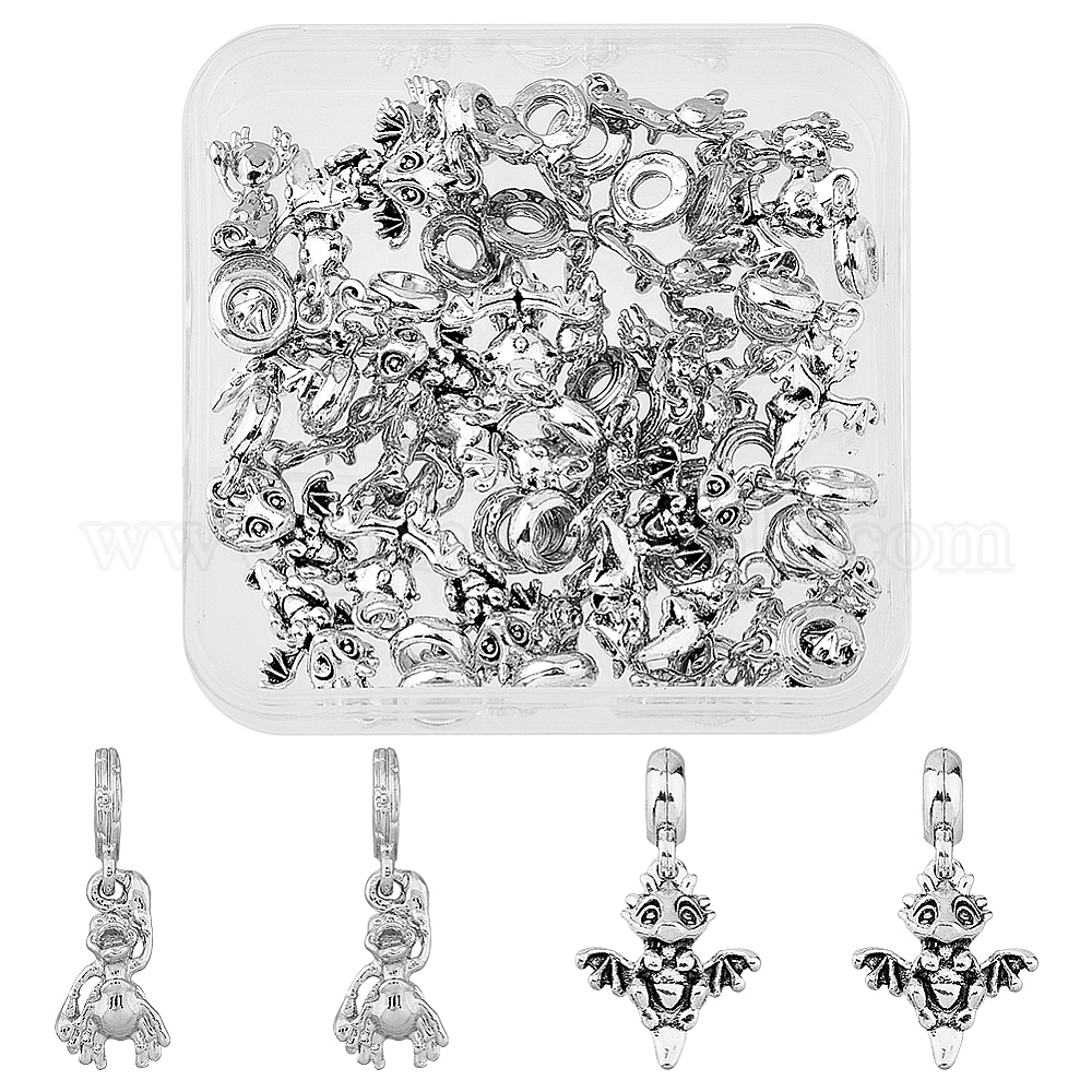 32 шт 2 стили сплава европейские подвески с подвесками, Подвески с большими отверстиями, дракон и животное