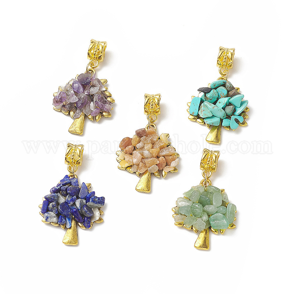 Европейские подвески с подвесками из смешанных драгоценных камней, древо жизни прелести, большой кулон дыра, с античный золотой гальваническим выводы сплава, смешанные окрашенные и неокрашенные