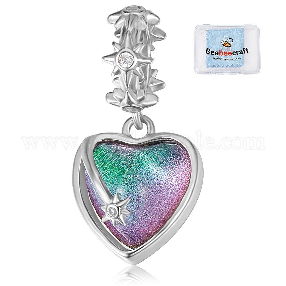 1pc 925 европейские подвески из стерлингового серебра с прозрачными кубическими цирконами, со стеклом, Подвески с большими отверстиями, сердце, с замшевой тканью 2 шт., квадратной салфеткой для полировки серебра