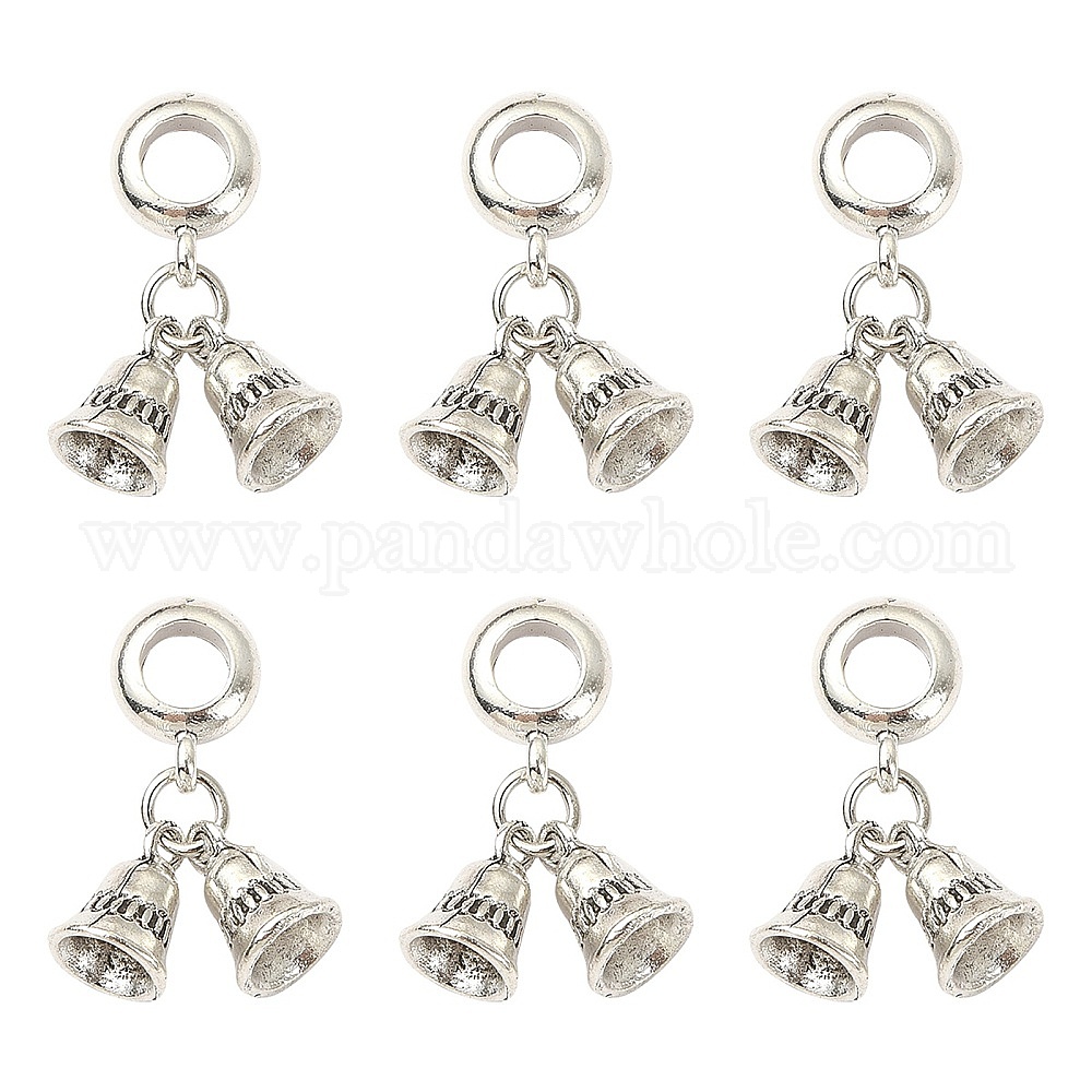 • Античное Серебро Европейские подвески из сплава в тибетском стиле, подвеска-колокольчик с большим отверстием, античное серебро, 24 мм, Белл: 10x8 мм, отверстие : 5 мм