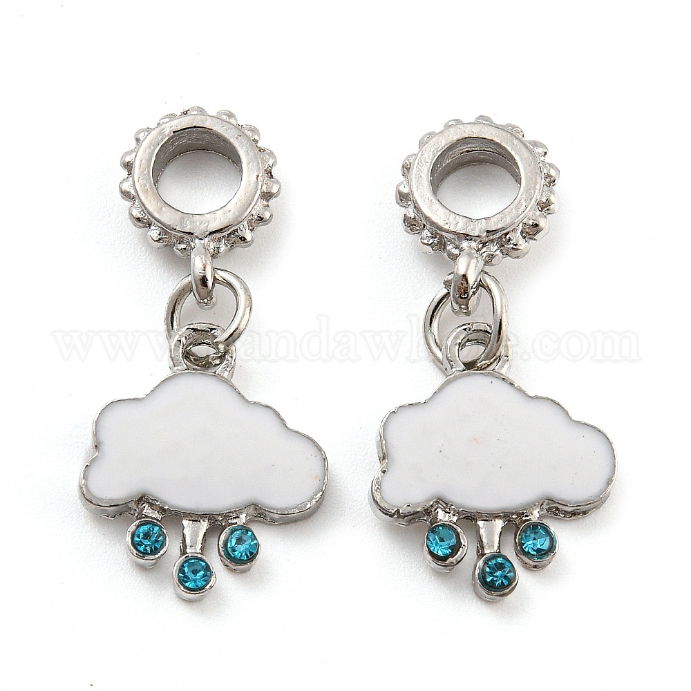 • Белый Стойка с покрытием из сплава эмали, облако, европейские подвески, Подвески с большими отверстиями, со стразами индиколит, платина, без кадмия, без никеля и без свинца, белые, 28 мм, отверстие : 4.5 мм, Облако: 14.5x12.5x2 мм